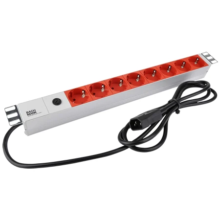 - Bachmann 19 Zoll Steckdosenleiste / Mehrfachsteckdose 8-fach rot mit Kaltgerätestecker Alu (1 HE)