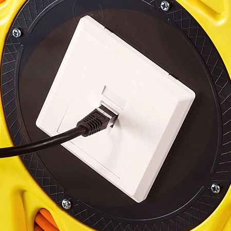 - integrierte Cat.6a Datendose mit Staubschutzkappe