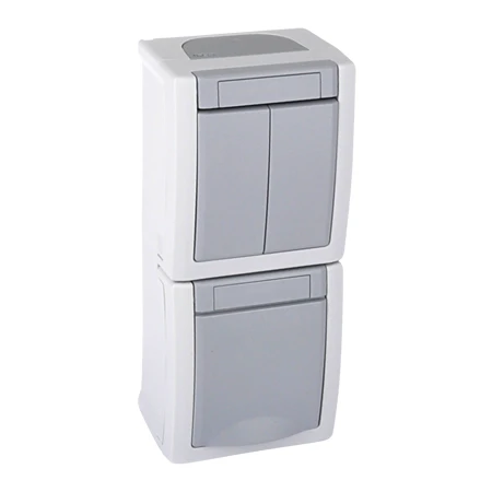 - Aufputz Serienschalter + Steckdose Kombination senkrecht IP54